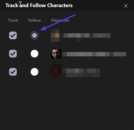 Under the tracking menu, you can select which character the map will follow while scanning and splashing holes.